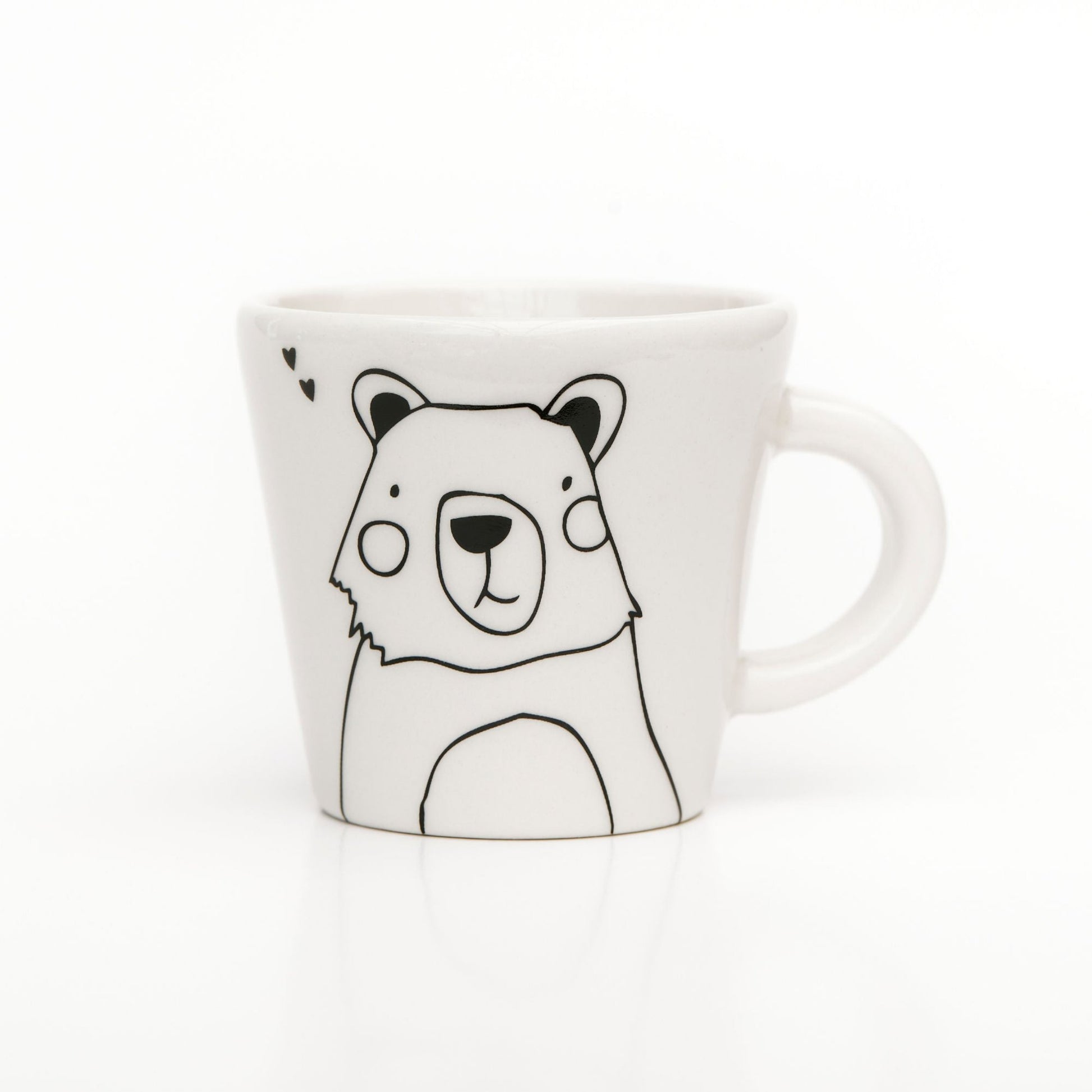 Small cup with cute bear illustration. Handmade in Cape Town, South Africa, it adds a unique touch to your table. Perfect for enjoying your favourite beverage with a hint of African flair.