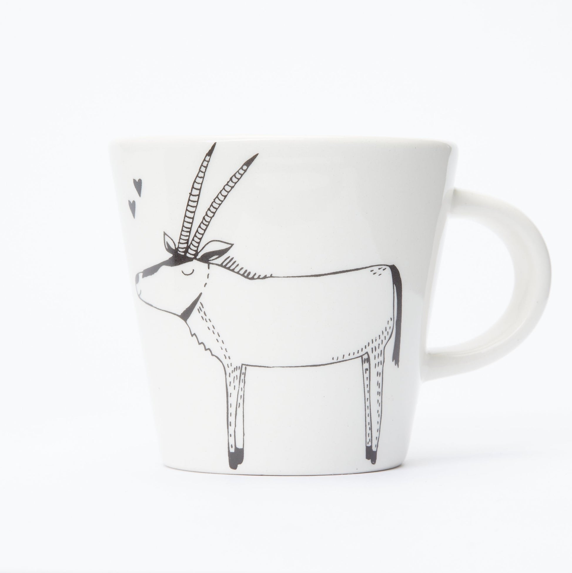 Embrace whimsy with every sip from our coffee cup featuring an Oryx illustration. Handmade in Cape Town, South Africa, this cup adds a unique and playful touch to your table. Perfect for enjoying your favourite beverage with a hint of African flair, it combines a delightful design with everyday functionality.