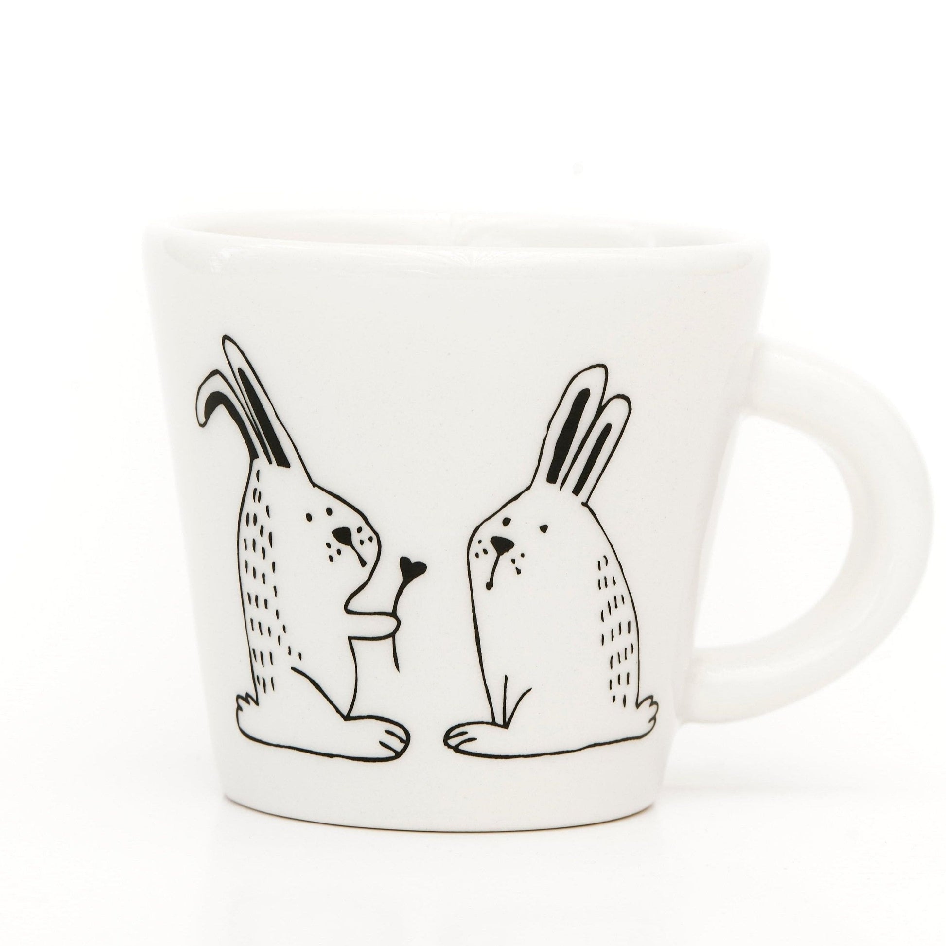 Celebrate the beauty of friendship with our Small Cup featuring a heartwarming illustration of one rabbit offering a flower to its friend. Handmade in Cape Town, South Africa, this cup adds a unique and charming touch to your table. Perfect for enjoying your favorite beverage with a hint of African flair, it combines delightful design with everyday functionality.