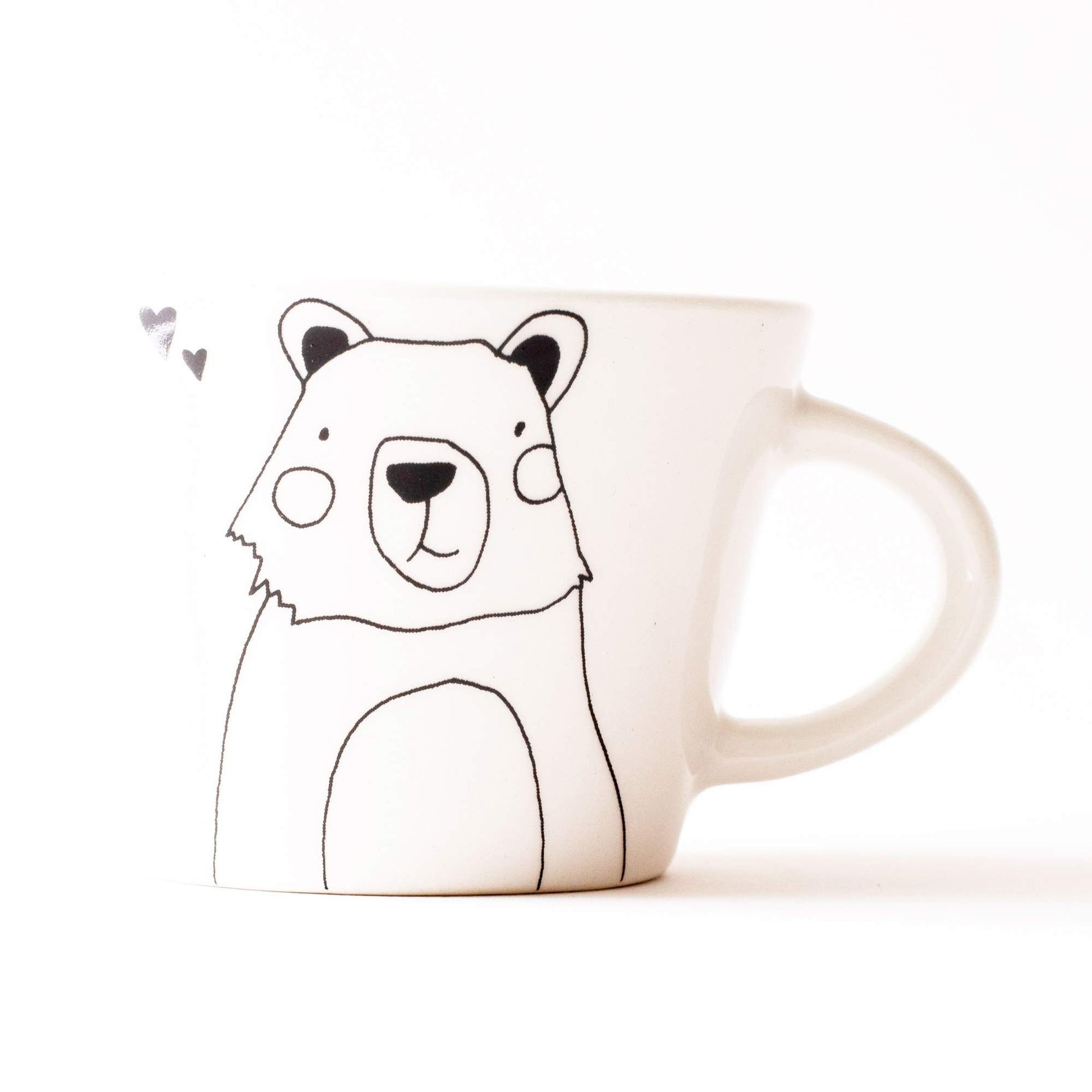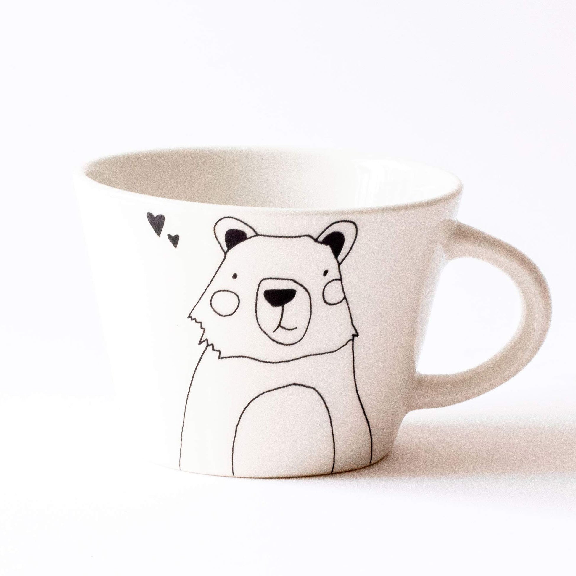 Large Ceramic Cup with a hand-drawn bear illustration. Handmade in Cape Town, South Africa, this piece adds a unique touch to your table. Inspired by South Africa's wildlife, it combines functionality with whimsical design, adding joy to your daily routine while you enjoy your favourite beverage.