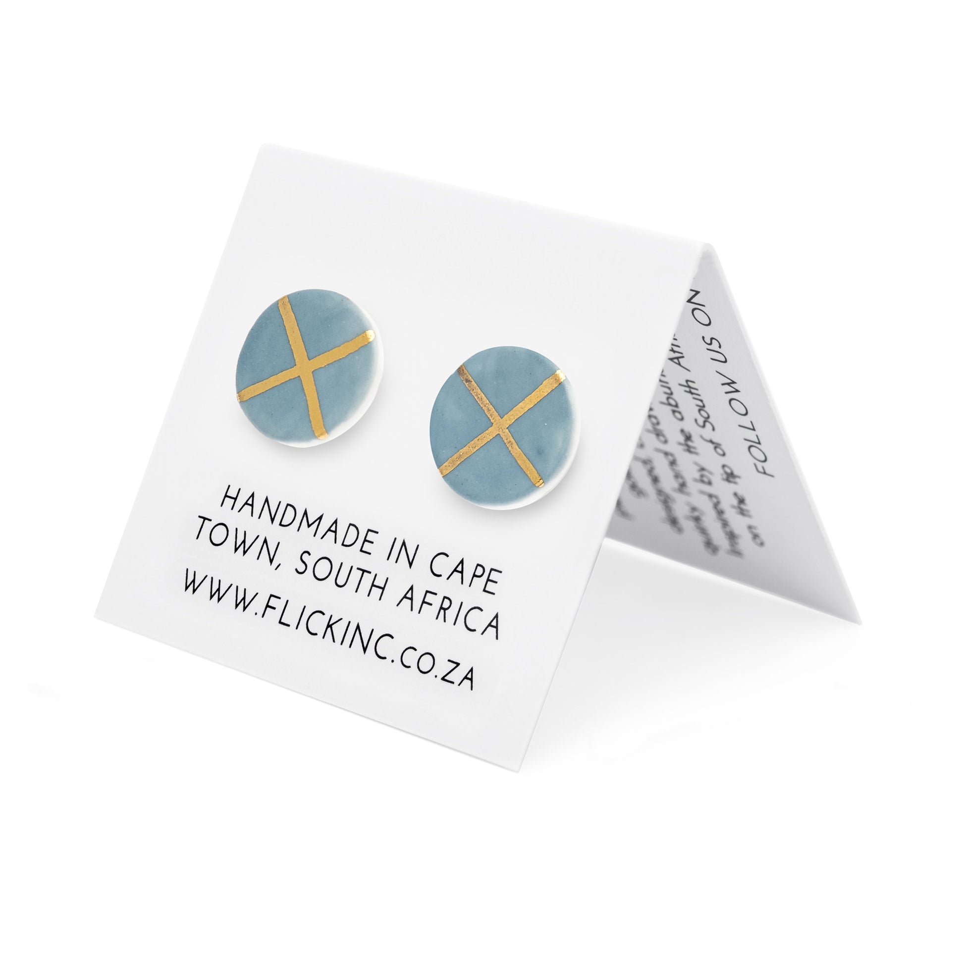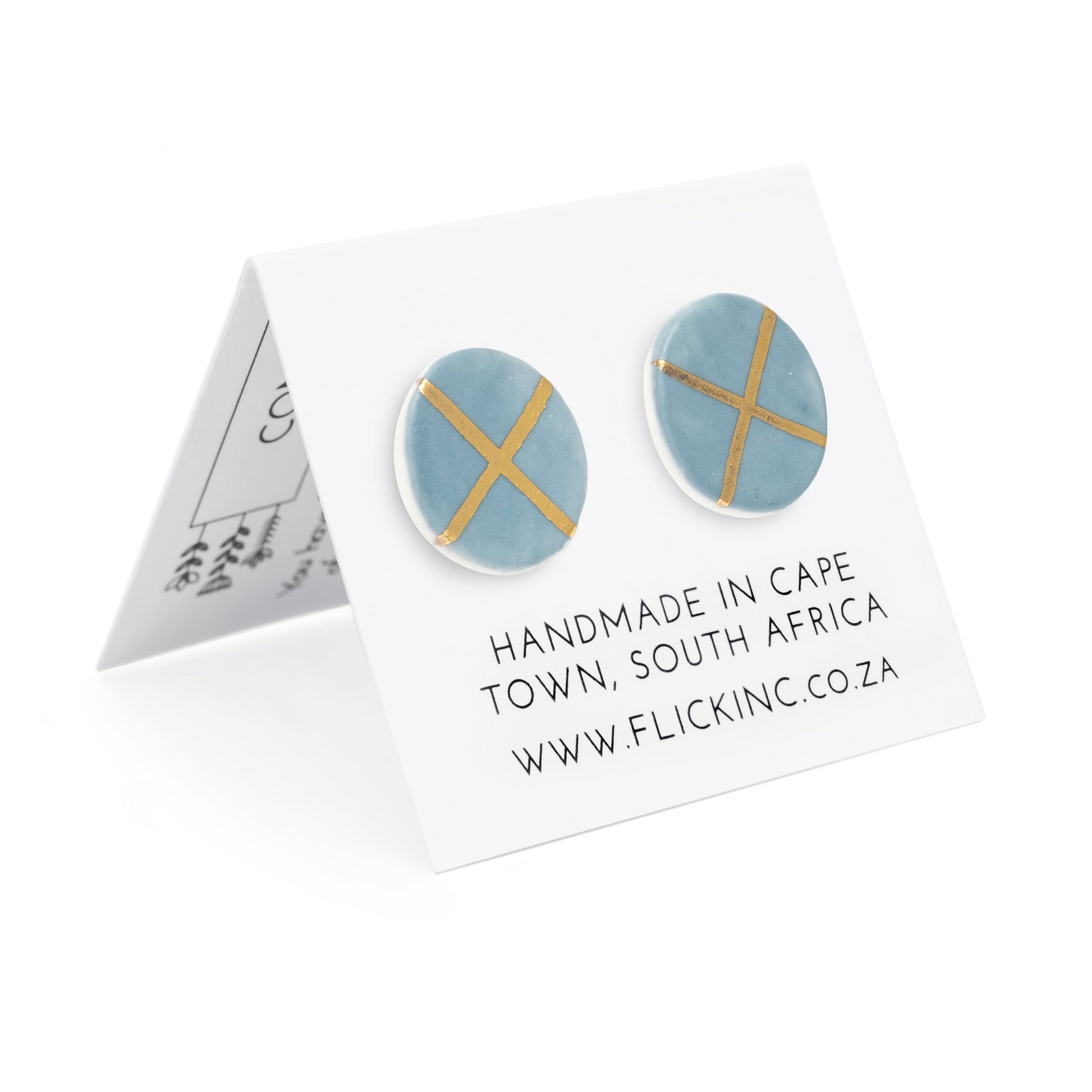 One pair of porcelain stud earrings – Horizon Blue Gold