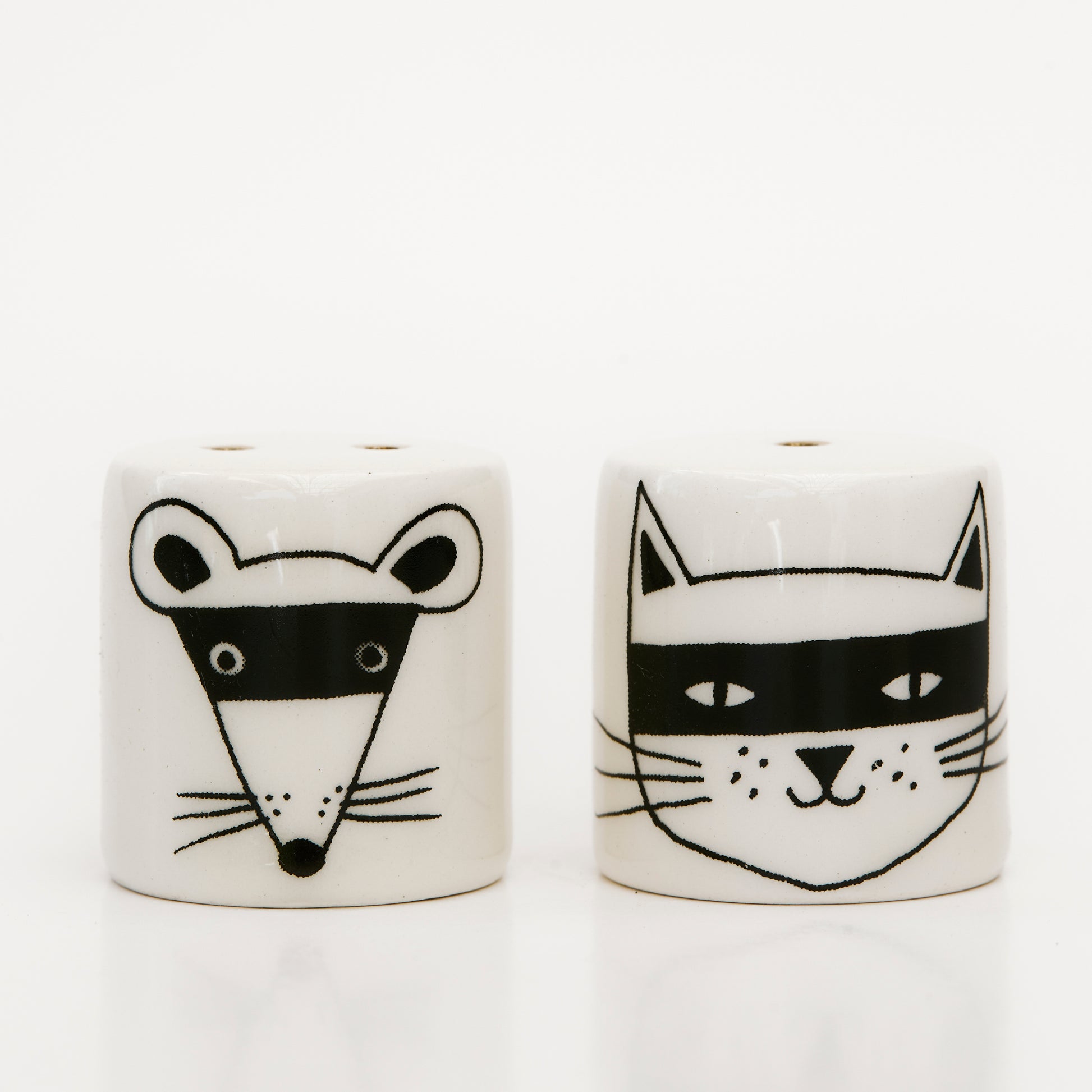 Bring a playful touch to your dining table with our Salt and Pepper Shakers – Bandit Friends, featuring adorable illustrations of a mischievous mouse and a cat wearing bandit masks. Handcrafted in Cape Town, South Africa, these shakers combine whimsical design with practical functionality, adding a charming and fun element to your meals while celebrating the cleverness of these little bandits.