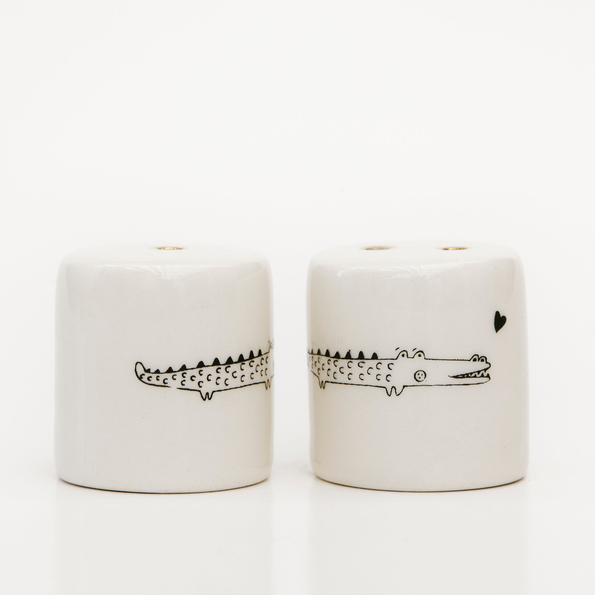 Add a touch of the wild to your table with our Salt and Pepper Shakers – Crocodile, featuring a playful illustrations of a crocodile. Handcrafted in Cape Town, South Africa, these shakers bring a unique and whimsical element to your dining experience. Combining functional design with a dash of fun, they’re perfect for spicing up your meals while showcasing a bit of South African wildlife charm.