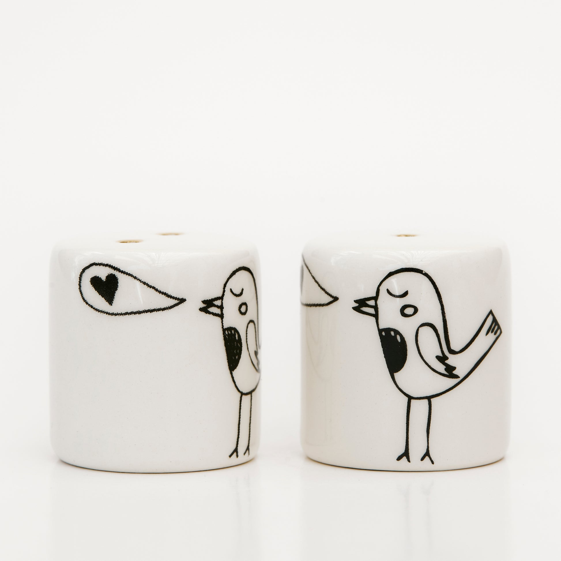 Bring a melodic touch to your table with our Salt and Pepper Shakers – Love Song, featuring an illustration of a cute little bird singing (a love song). Handcrafted in Cape Town, South Africa, these shakers blend whimsical charm with practical functionality, adding a delightful and affectionate element to your dining experience.
