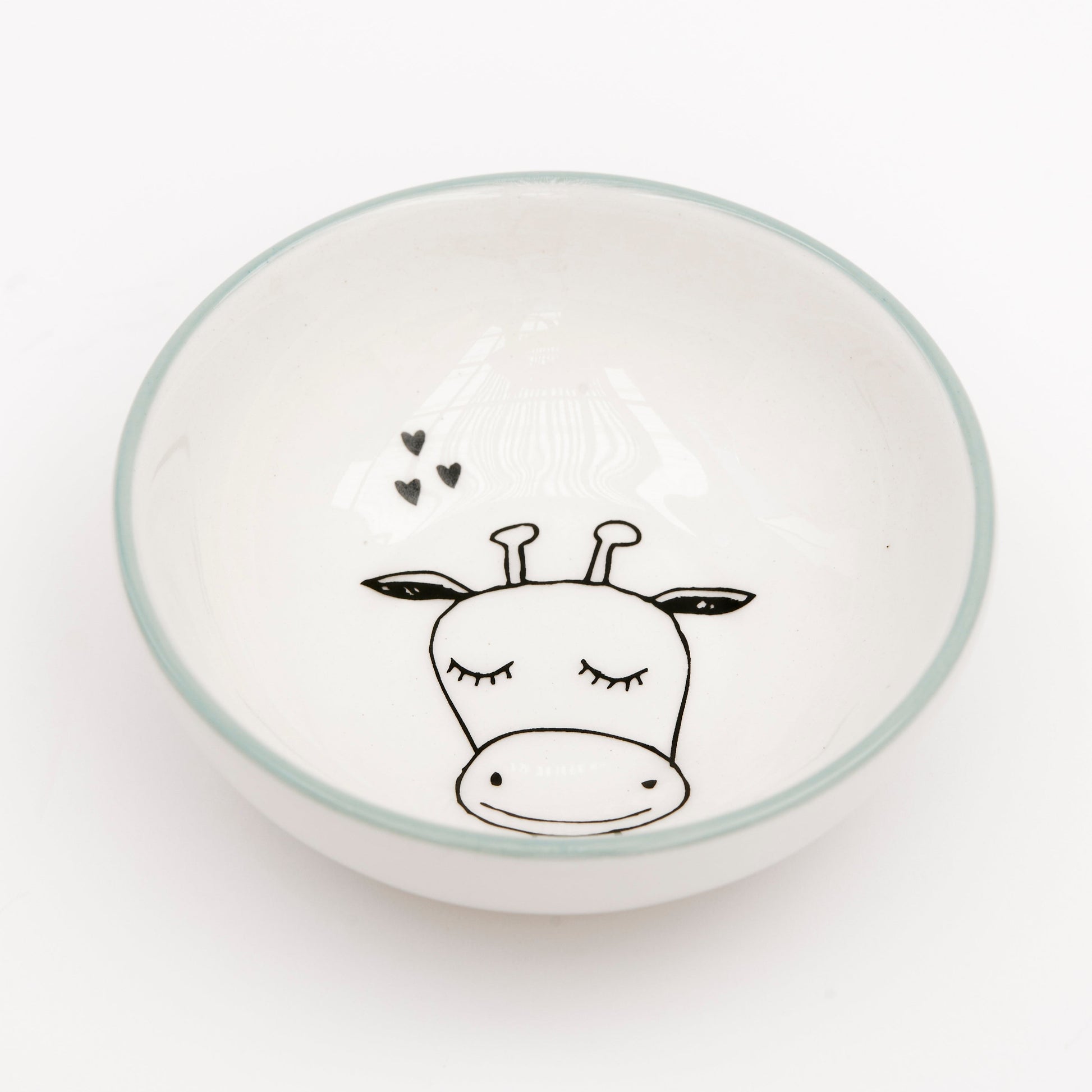 Celebrate affection with our Giraffe Love small bowl, handmade in Cape Town, South Africa. Featuring an adorable illustration of two giraffes in a loving pose, this charming bowl is perfect for serving snacks, dips, or condiments. It also serves as a delightful holder for rings, small change, or earrings, adding a touch of playful elegance and functionality to your daily routine.