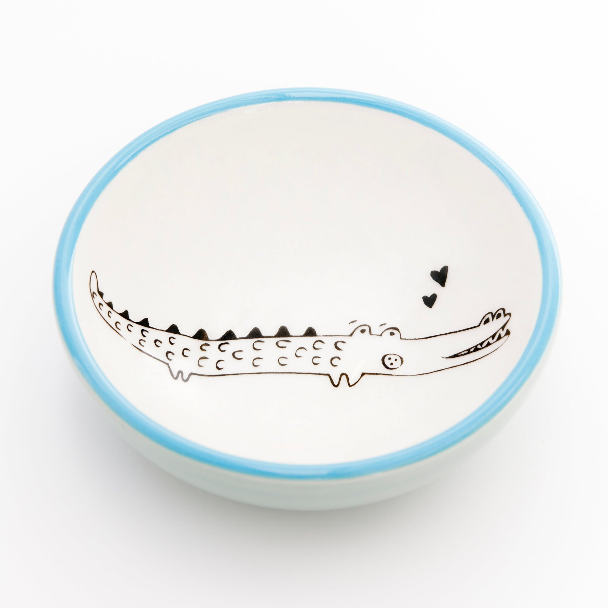 Add a playful touch to your collection with our Little Crocodile small bowl, handmade in Cape Town, South Africa. Featuring an adorable crocodile with a small heart in a speech bubble, this whimsical bowl is perfect for serving snacks, dips, or condiments. It also makes a charming holder for rings, small change, or earrings, bringing a bit of fun and functionality to your everyday routine.