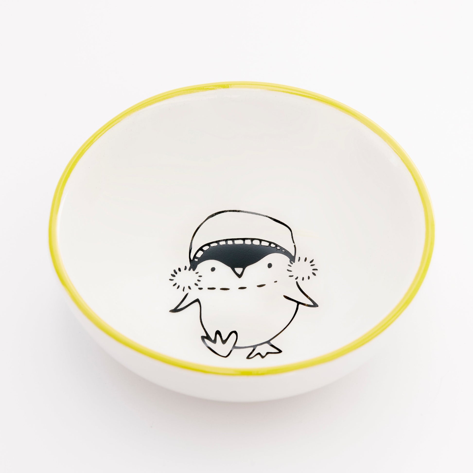 Embrace the coziness of winter with this cute wintry looking Penguin small bowl, handmade in Cape Town, South Africa. Featuring an adorable penguin illustration in a wintry scene, this charming bowl is perfect for serving snacks, dips, or condiments. It also makes a delightful holder for rings, small change, or earrings, adding a touch of festive cheer and functionality to your daily routine.