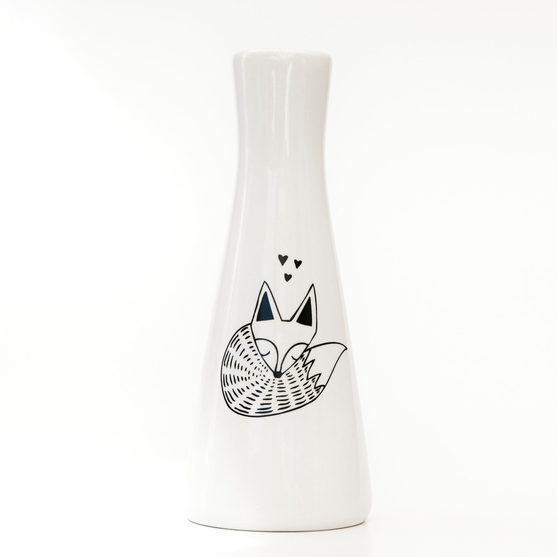 Bring a touch of cozy charm to your decor with our Sleeping Fox tall vase, featuring a serene illustration of a curled-up fox. Handcrafted in Cape Town, South Africa, this vase adds a whimsical and soothing element to your space. Perfect for displaying delicate blooms or as a charming decorative piece, it combines endearing design with practical functionality.