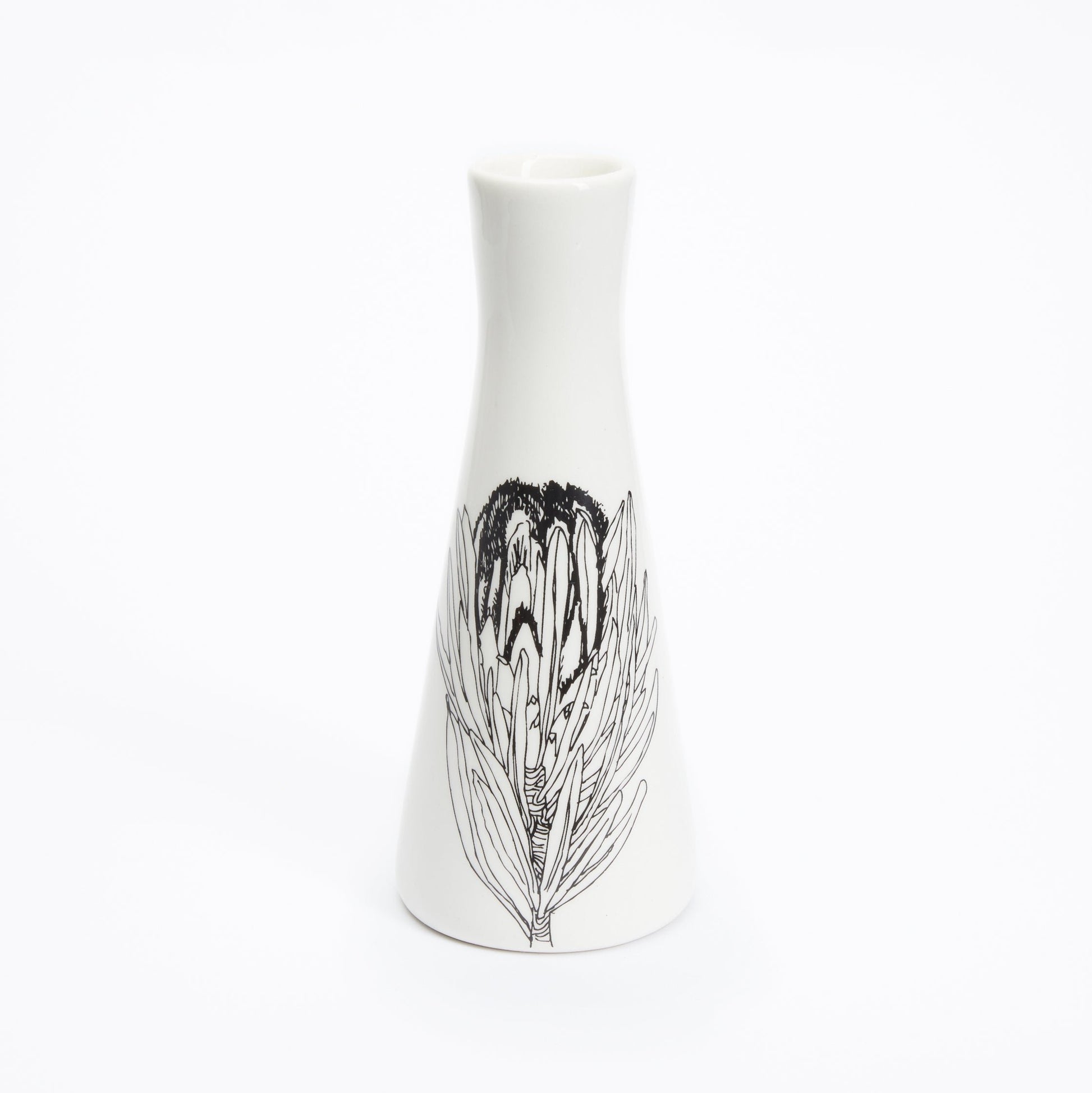 Bring the vibrant beauty of South Africa's flora into your home with our Sugarbush Protea tall vase. Adorned with a stunning illustration of the protea flower, handcrafted in Cape Town, South Africa, this vase adds a touch of natural elegance to any space. Perfect for displaying fresh blooms or as a captivating standalone piece, it combines artistic grace with practical functionality.